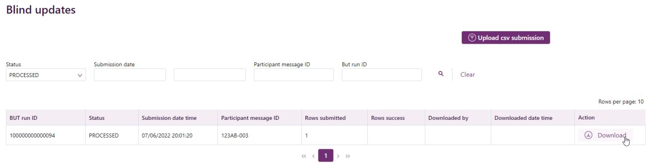 - In the Blind updates interface, find the submission response to download.