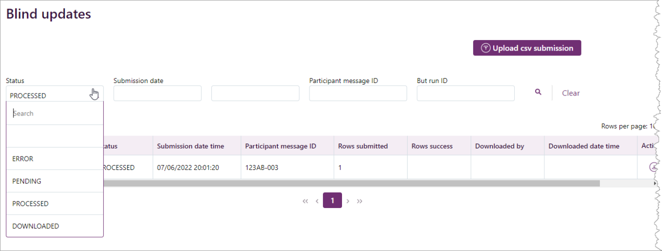 Search for submissions by the Payload Response ID provided by AEMO in the Blind Update interface after a successful submission upload |