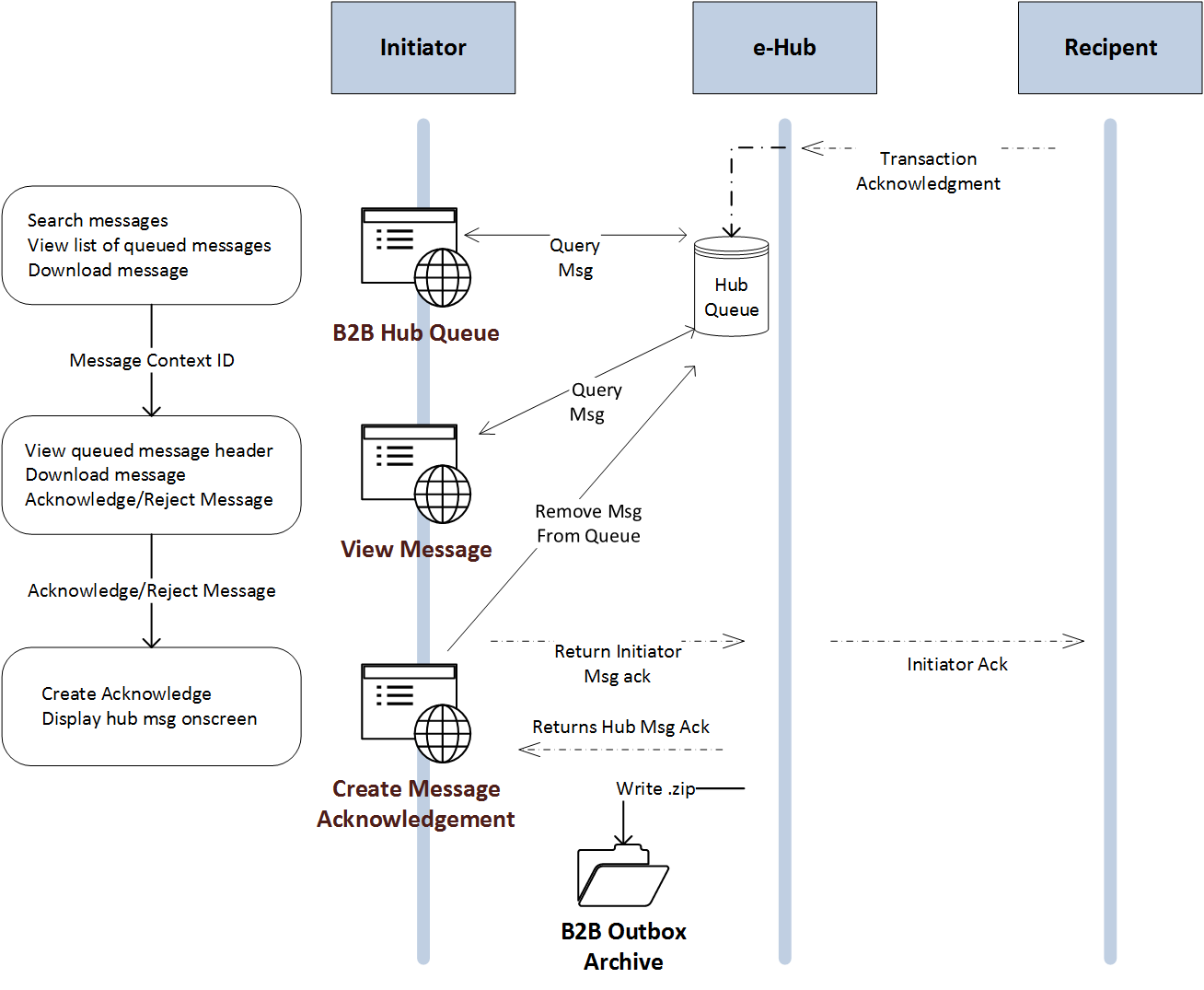 - Acknowledge a B2B retail transaction message and remove it from their queue.