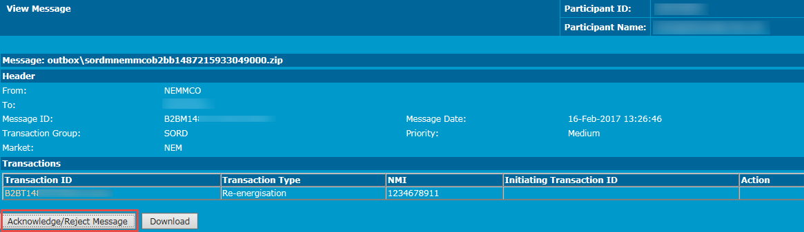 - In the View Message interface, click Acknowledge/Reject Message.