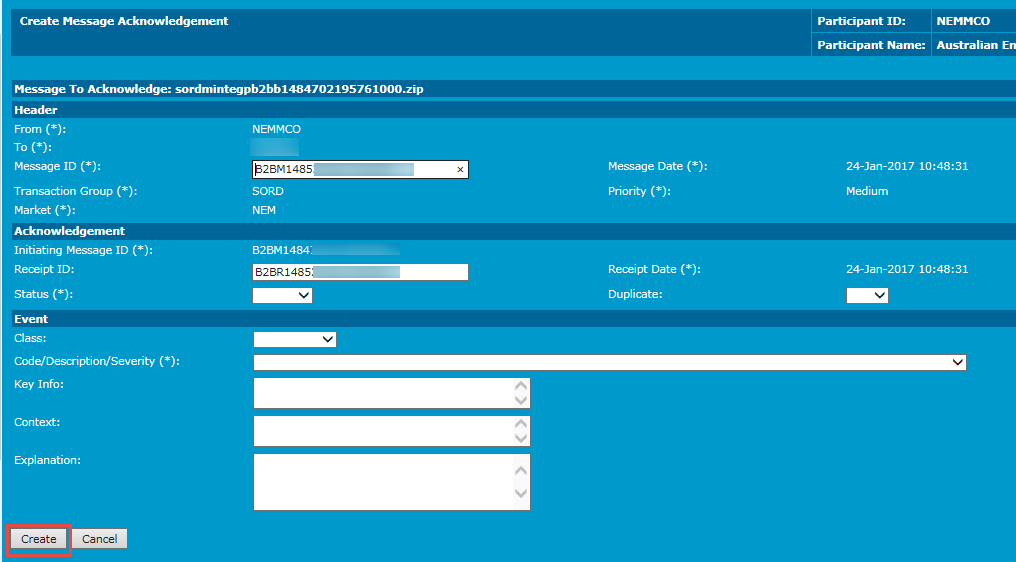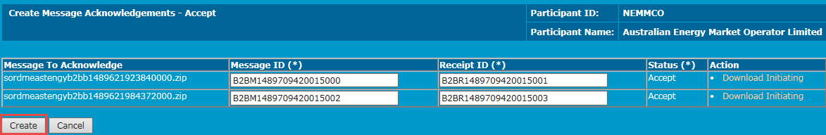 - In the Create Message Acknowledgement - Accept interface, click Create.