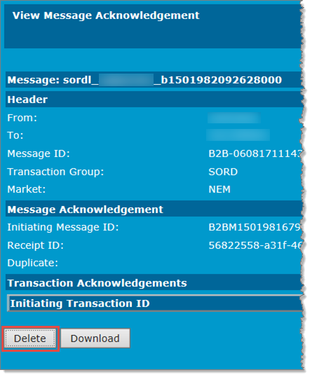 Participant Users with the correct access rights can delete B2B Business-to-Business. Generic term used to refer to defined business-to-business interactions between participants; excludes interactions between a participant and market systems such as MSATS. Hub Queue messages.