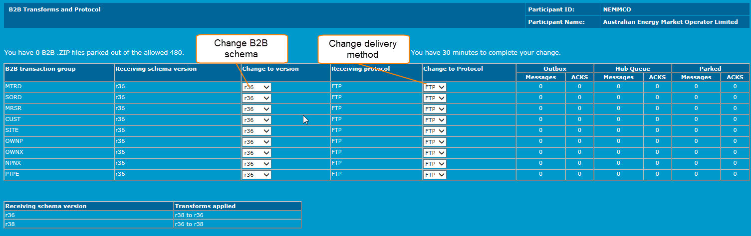 - FTP: AEMO systems to participant systems interaction using batch processing, suitable for participant systems using database technology and submission or receipt of high volumes of data.