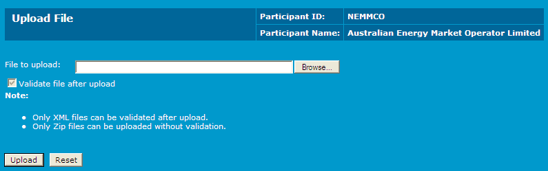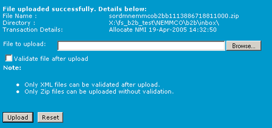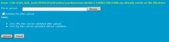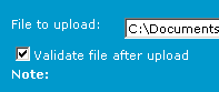 - If you are uploading an .XML file and it requires validation after upload, click the Validate file after upload check box and then click Upload.