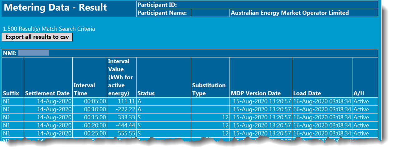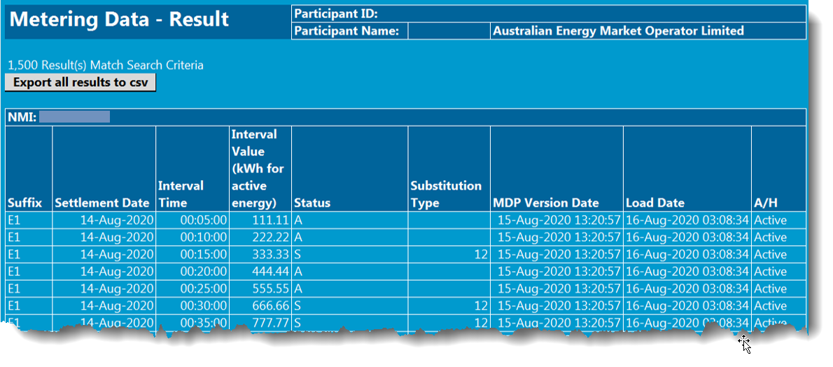 Interval Metering data results from MTRD