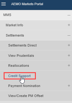 - On the left navigation pane, click MMS, then Settlements and then Credit Support.