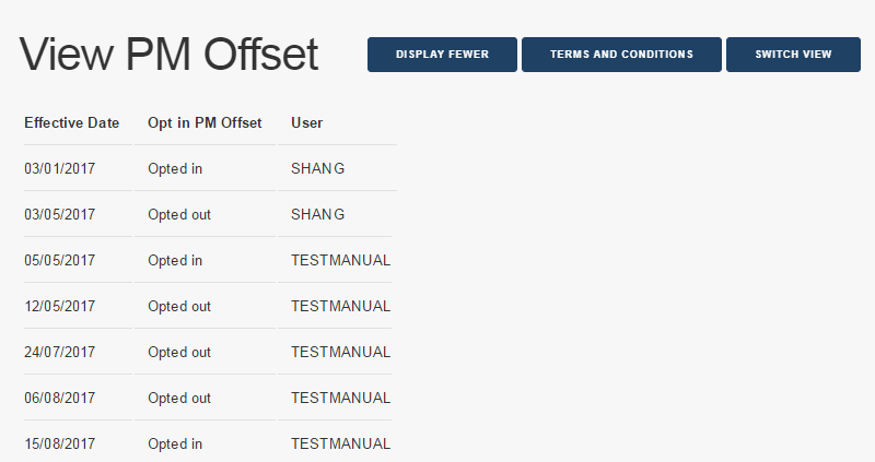 - To see the PM Offset list view, click Switch View (see PM Offset list view).
