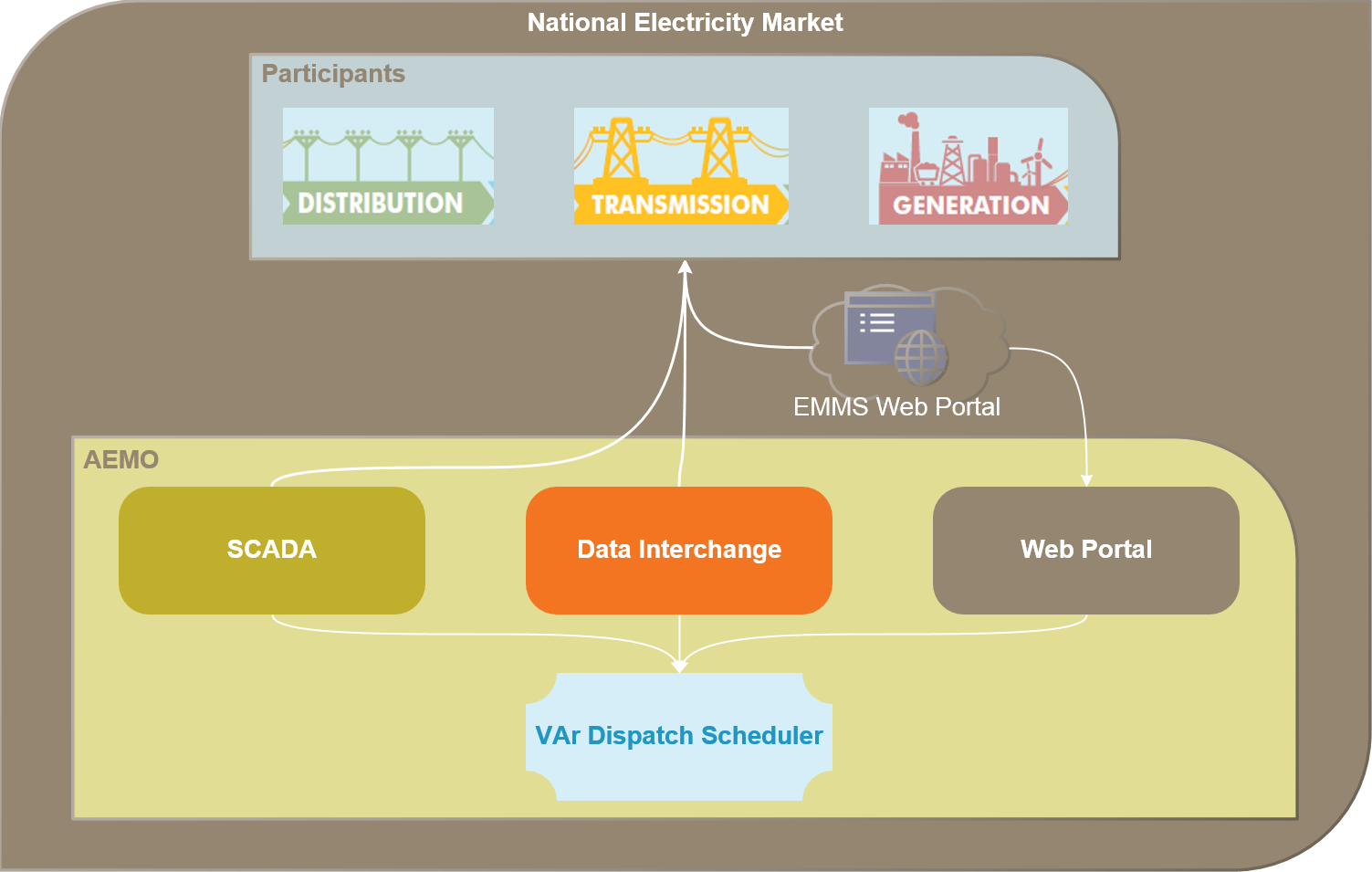 - The VAr Dispatch web interface in the EMMS Web Portal is a low cost option needing only a web browser with MarketNet access, see VAr Dispatch Markets Portal Interface. The web interface is one way; participants cannot use it to inform AEMO of device unavailability, see Reactive device availability.
